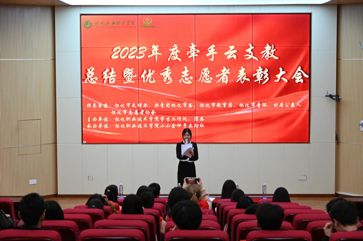 近日,由学校小小金种子互助社组织的怀化市2023年度牵手“云支教”志愿服务活动总结暨优秀志愿者表彰大会在学校图书馆学术报告厅举行。