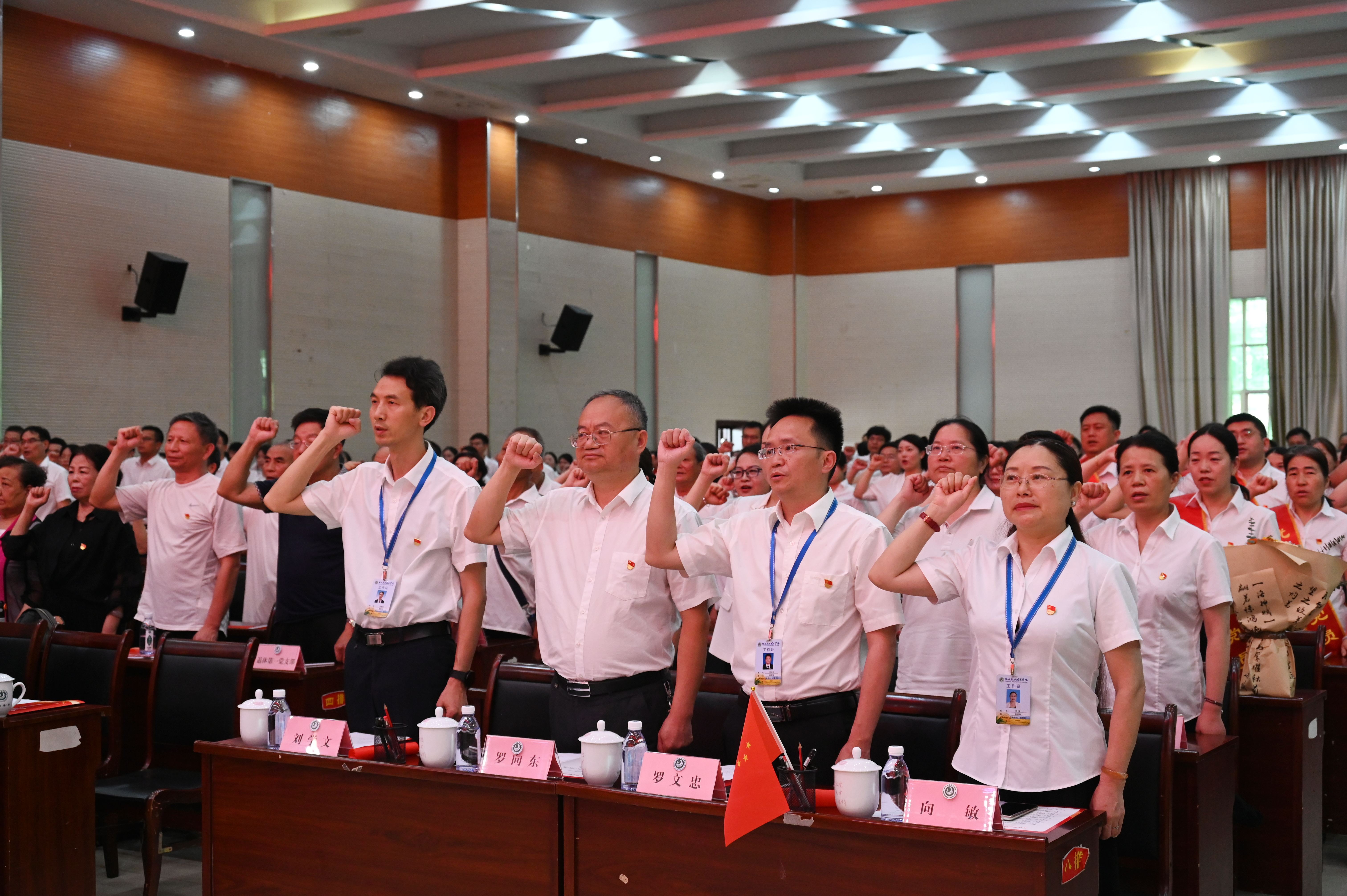 会上,组织新党员入党宣誓、老党员重温入党誓词,为荣获“光荣在党五十年”纪念章的老党员代表颁发纪念章,表彰了14名优秀共产党员、14名优秀党务工作者、2个先进基层党组织。随后,举行了“开拓新征程创造新未来”迎“七一”文艺汇演,通过《唱支山歌给党听》《我和我的祖国》《党的赞歌》《没有共产党就没有新中国》等节目,向党的生日献礼。