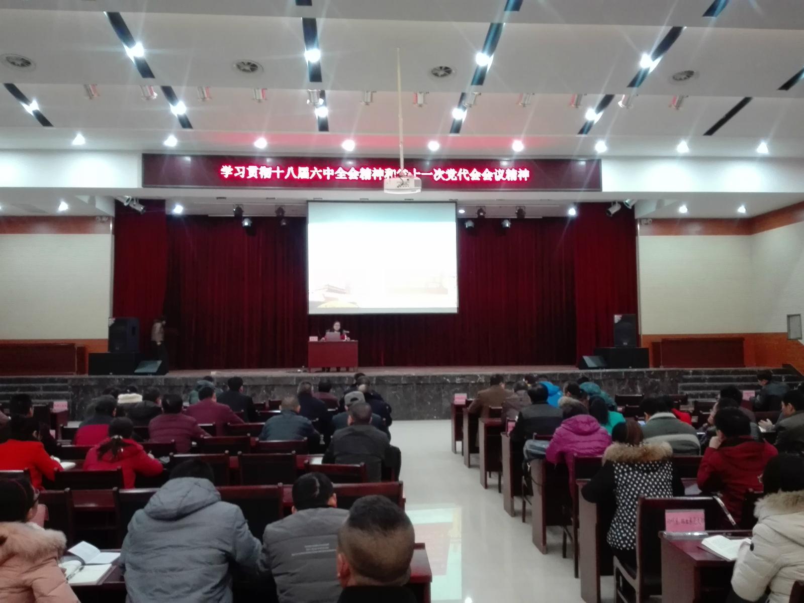 教务处处长罗毅华从四个方面深入浅出地谈了党的十八届六中全会精神和省十一次党代会精神。一是《关于新形势下党内政治生活的若干准则》就是要严肃党内政治生活;二是《中国共产党党内监督条例》就是要完善党内监督;三是学习贯彻省十一次党代会精神,建设富饶美丽幸福新湖南;四是学习贯彻十八届六中全会精神,从严治教。