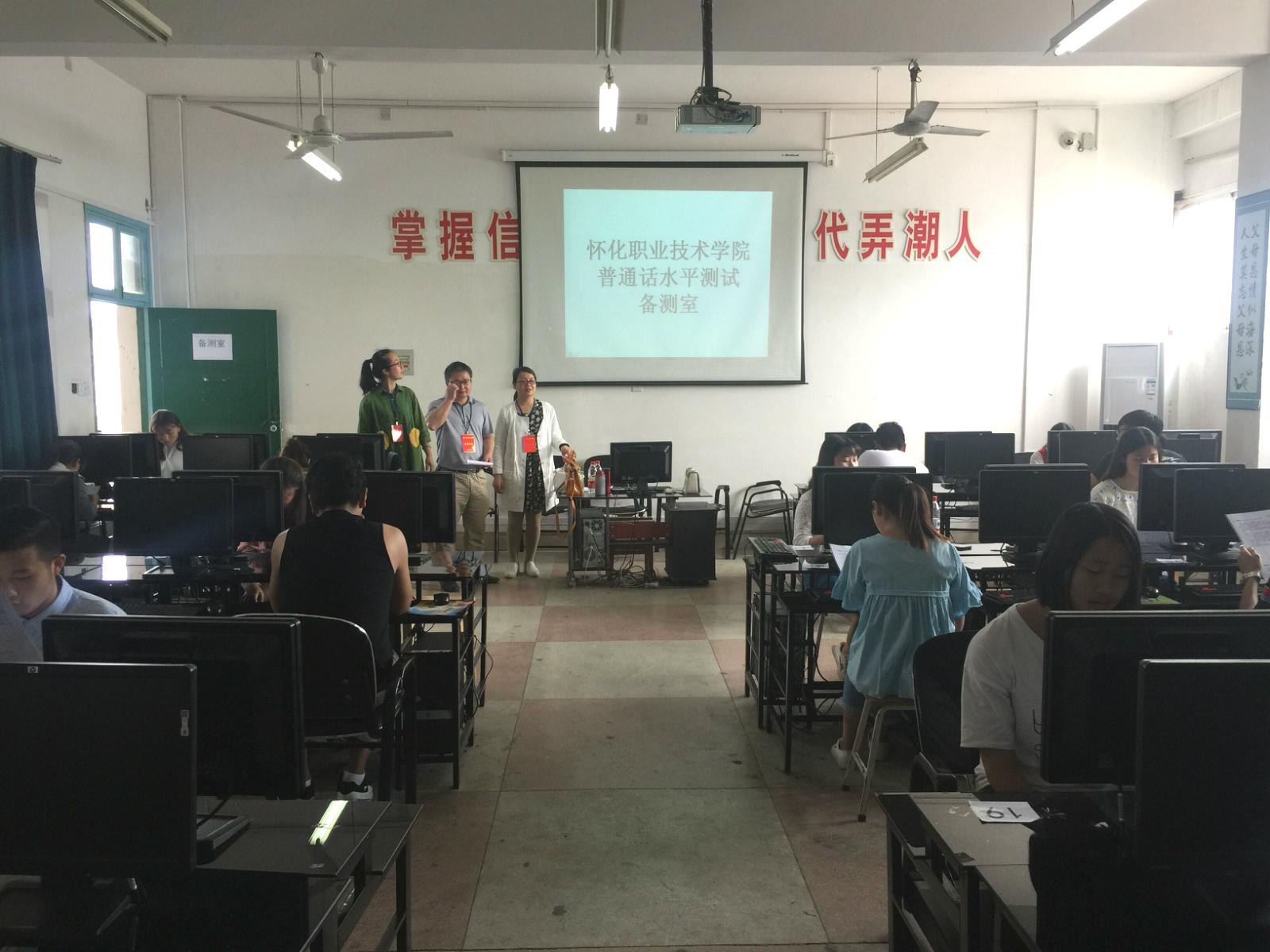 本次普通话水平测试在实训楼50720套测试设备,为确保考试井然有序,学生以20人为一组,共31组,分时间段进行测试。整个测试分候测——备测——正式测试三个流程。早上七点半,测试站相关教师有条不紊地开始测试工作。考试过程中,来自各个专业的学生积极参考,在候测室主动与测试老师交谈,询问相关注意事项,在备测室认真备考,从而在正式测试中表现出最佳状态。截至下午六点半,测试工作圆满完成。
